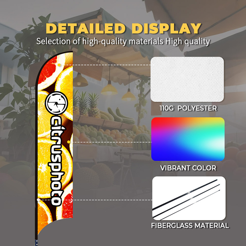 The kind of display advertising flag is easy to change the graphics and flexible to display. If you want to expose your advertising messages to a large extent, then the concave advertising flag is perfect for you.